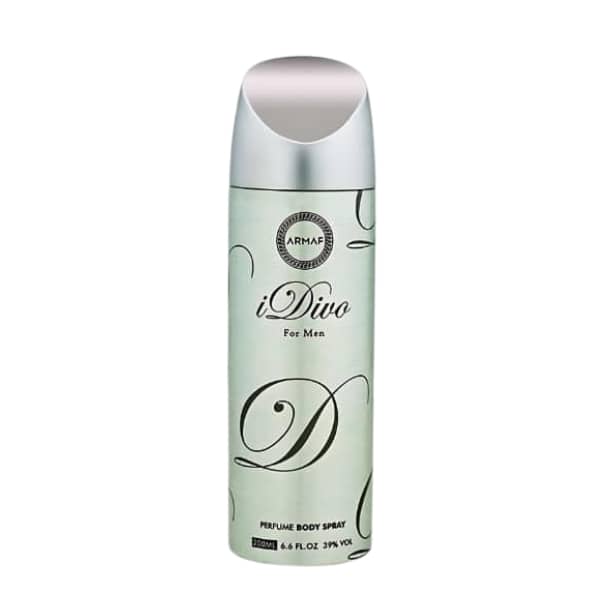 اسپری عطر آرماف آی دیوو | ARMAF I DIVO Body Spray مناسب فصول گرم و معتدل سال می باشد. همچنین این عطر با رایحه محبوبی که داردبرای استفاده روزانه مناسب می باشد.فروشگاه اینترنتی عطر و ادکلن لیلیوم آرزومند است که این محصول مورد پسند شما مشتری محترم واقع شود.