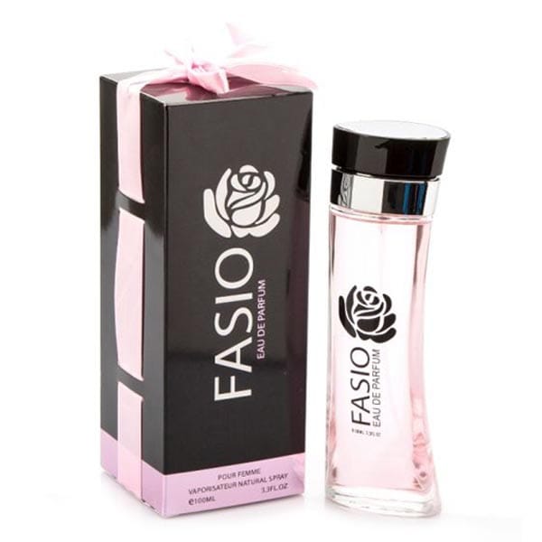 بطری فسیو بسیار شیک و زنانه ساخته شده است. این شیشهی کشیده و بلند با رنگ صورتی و زنانهاش برای هماهنگشدن با لباسهای بانوان بسیار مناسب است. روی شیشه، نام Fasio و یک طرح گل رز را مشاهده میکنید. مایع صورتیرنگ درون بطری از روی شیشهی شفاف آن بهخوبی دیده میشود. در بطری به رنگ سیاه است و بهخوبی روی گردن نقرهای رنگ عطر سوار شده است. روی کارتن فاسیو یک روبان پارچهای به شکل پاپیون کار شده که زیبایی آن را دوچندان کرده است.
